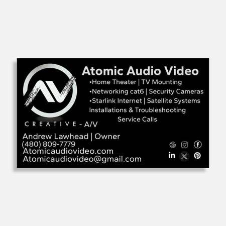 Personalized Audio Video solutions for every budget Atomic Audio & Video will oversee your home entertainment process from beginning to end. Whether a flat panel TV on a stand, an entry-level surround sound system, distributed audio in and outside your home or a state-of-the-art home theater installation,
