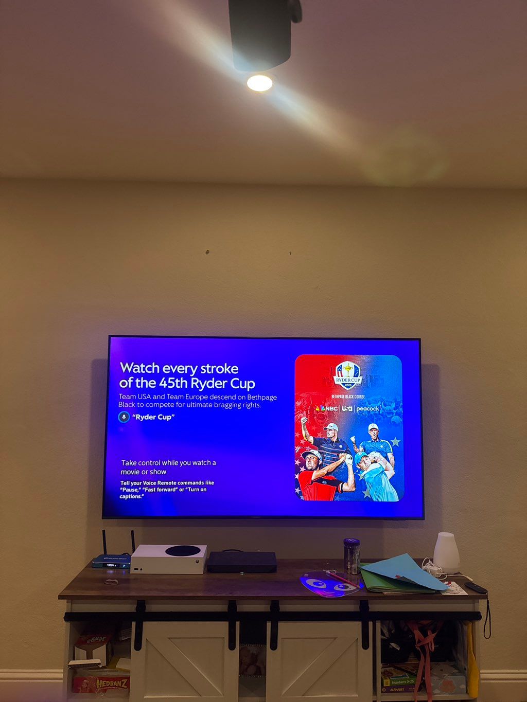 Details: Wall mount • Drywall • TV larger than 60 inches • Yes, there’s an electrical outlet nearby • Yes, I need to conceal cables and wires • Yes, I already have a mount or stand • Articulating (tilts up and down, moves side to side) • Gaming console • None