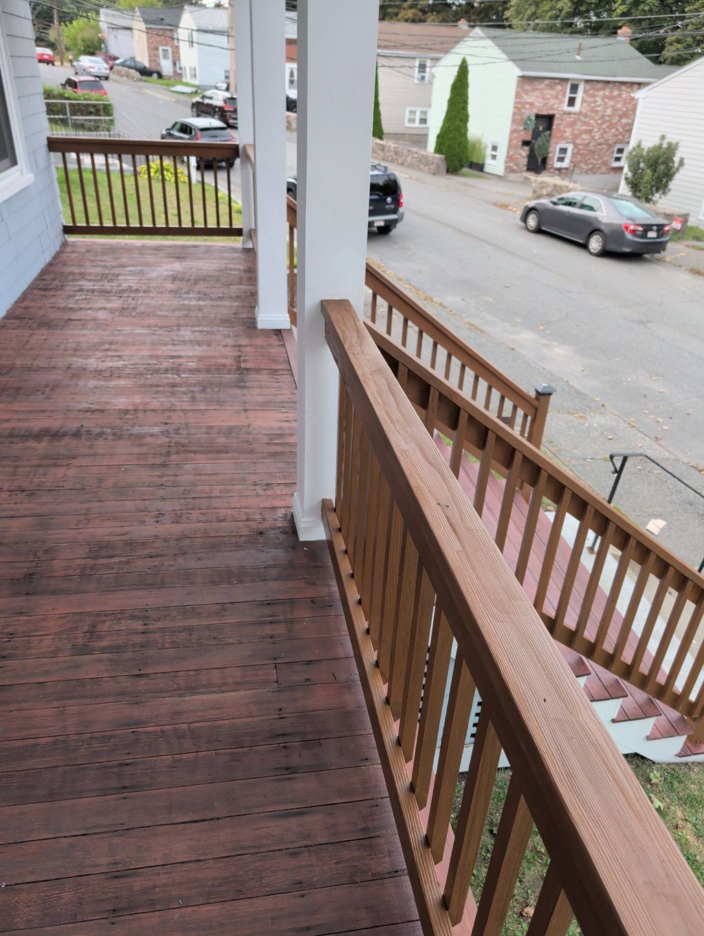 Details: Application of finishes (sanding, staining, painting) • Repair minor cracks, gaps, or holes • Repair one or few decking boards • Repair significant wood rot or water damage • Wood • Residential