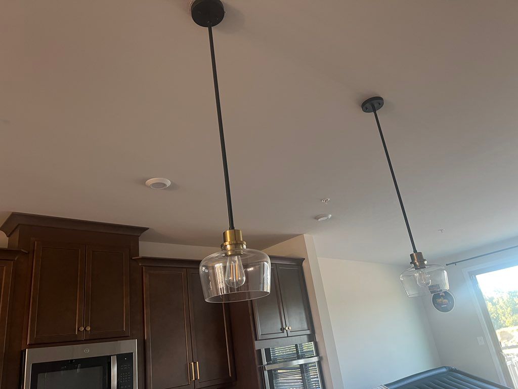 Details: New lighting installation • 2-4 lights • 8 - 10 feet (standard ceiling) • Indoors • Existing property • House