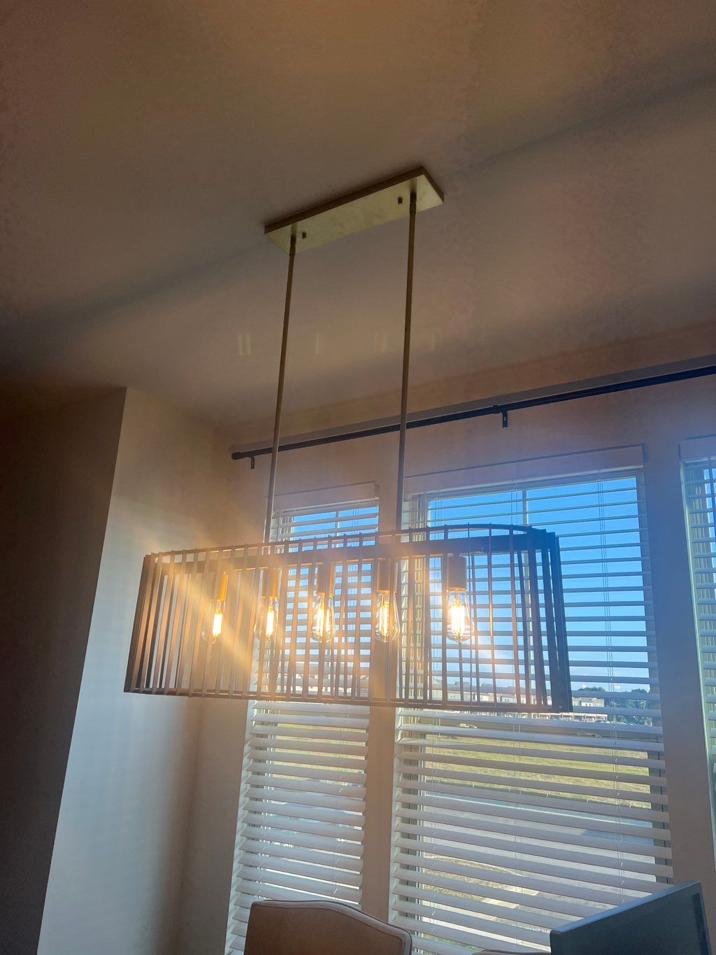 Details: Replacement of existing lighting • 1 light • 8 - 10 feet (standard ceiling) • Indoors • Existing property • House