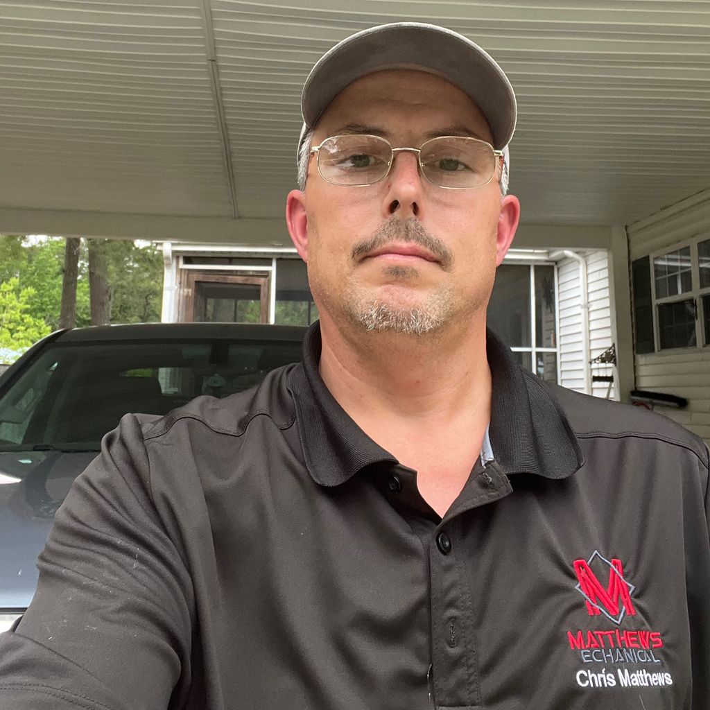 Hi! My name is Christopher Matthews owner operator of Matthews Mechanical. I’m highly motivated and very eager to serve you. I have over 20 years of experience in the following fields of work. Electrical service and repair,, HVACR installation, service, and repair. I love the challenge of figuring out problems. Most of all I strive to ensure every one of our customers are 100% fully satisfied. I take great pride in my work. I can guarantee you that I will treat your project as one of my own. Best of all I can now provide my customers great deals on HVAC equipment. I have a direct contact with a major HVAC supplier that allows me to get very competitive prices on all the equipment I install. The best part is all equipment installed by my company Carrie’s the full Manufacturers warranty!