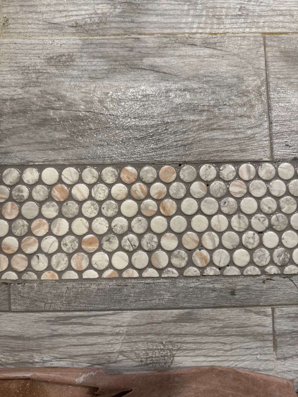 Details: Bathroom • Tub / Shower enclosure • Floor • Crumbling, stained, or missing grout • Ceramic