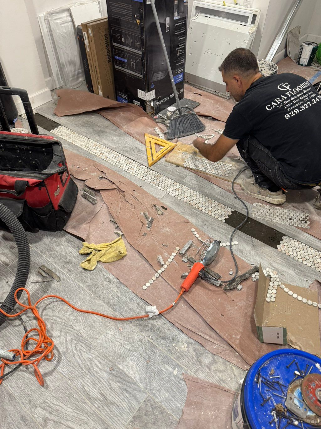 Details: Living room • Floor • Missing tile(s) • Ceramic