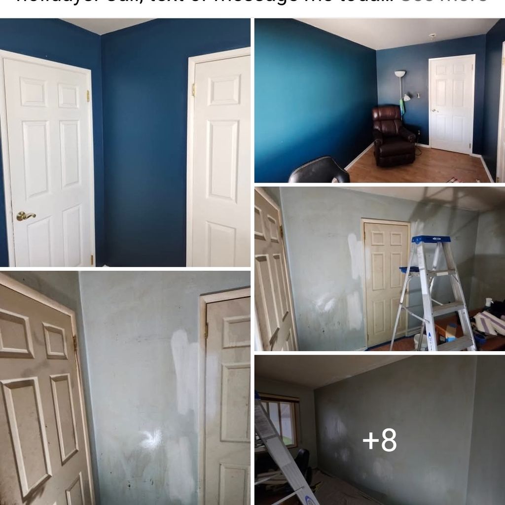 Details: Home • 4 rooms • Walls • 8 - 10 feet (standard ceiling) • Repainting, with a color change • Fair - minor holes and scratches • No, this is not new construction • No, I will move things out of the way myself