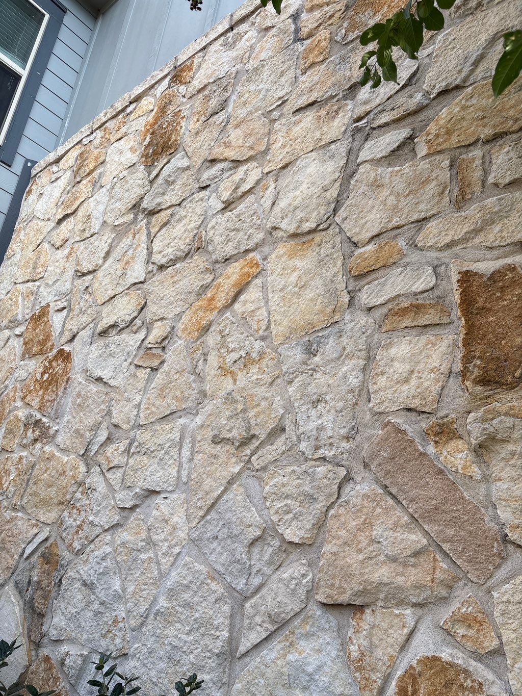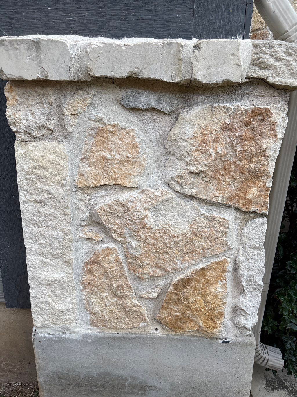 Details: Minor repair • Cracks in mortar • Leaning structure • Patio or porch • Wall • Stone • Residential
