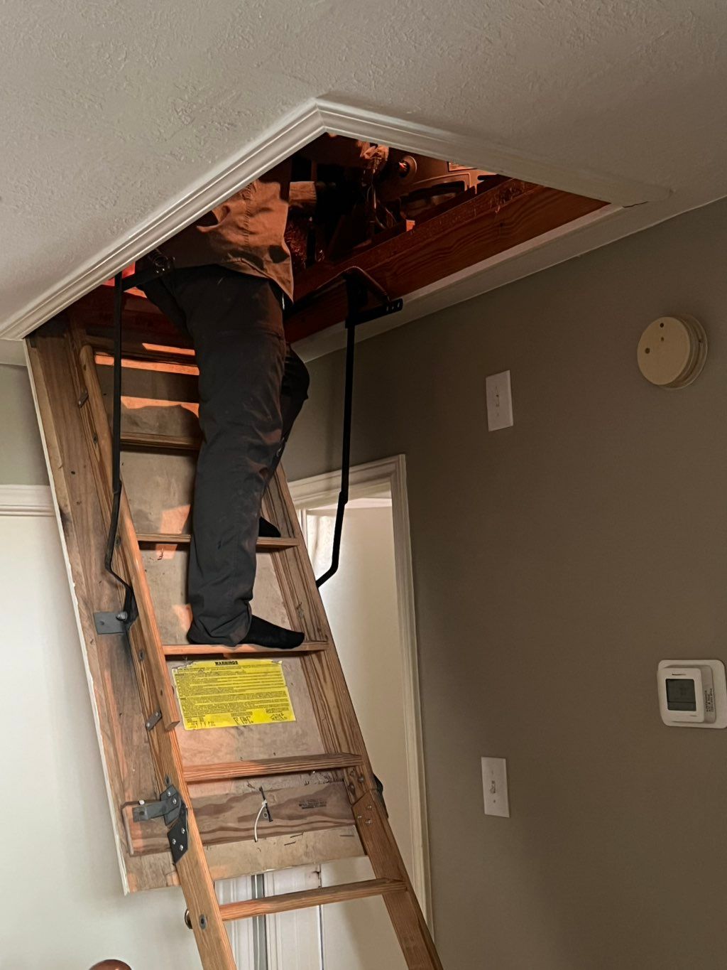 Details: Routine maintenance • No hot water • Attic • House