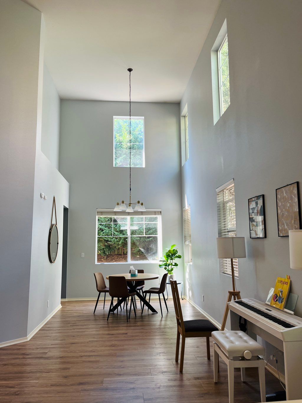 Details: Home • 2 rooms • Walls • Over 14 feet (lofty ceiling) • Repainting, with a color change • Excellent - clean and smooth • No, this is not new construction • No, I will move things out of the way myself